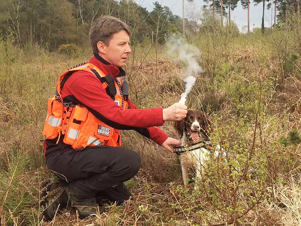 The smoke is often used by dog handlers in disaster exercises, dog training, and also for checking wind direction during search missions in critical situations..